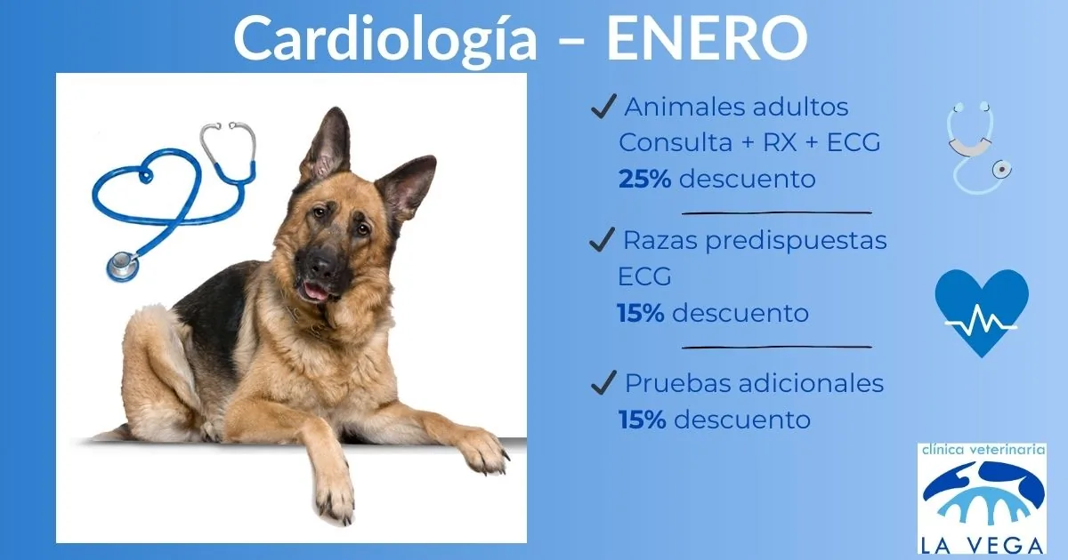 - 🫀 Consulta cardiológica + radiografía + electrocardiograma → 25% de descuento en animales adultos.